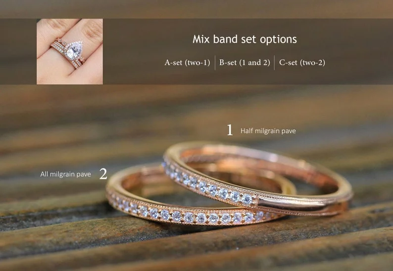 -Total stones weight: Approximately 3.16 cttw (w/ 2 all around bands), 2.66 cttw (w/ 2 half around bands) and 2.91 cttw (w/ mixed around bands)