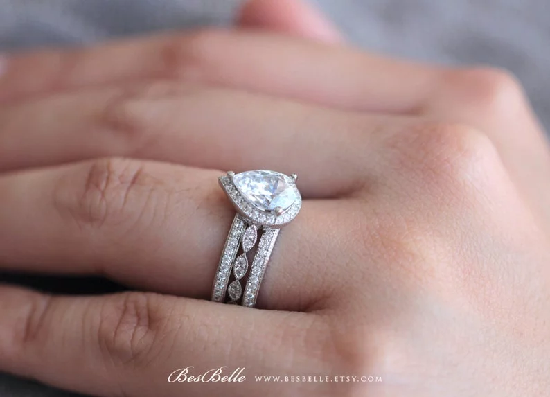 -Diamond cutting: Pear cut (center) & brilliant pave set