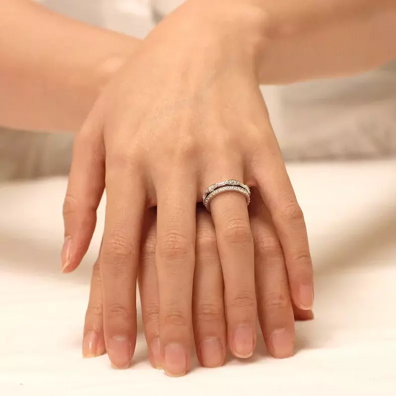 - Stone dimension: Brilliant cut [1.8mm, 1.2mm] and baguette cut [3x1.25mm]
