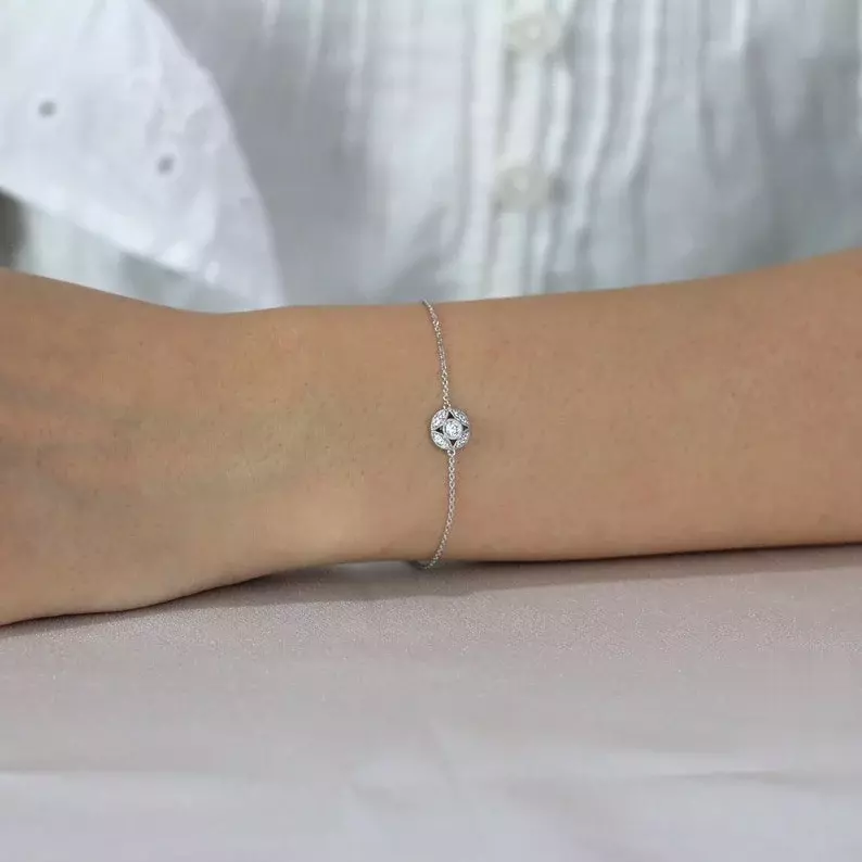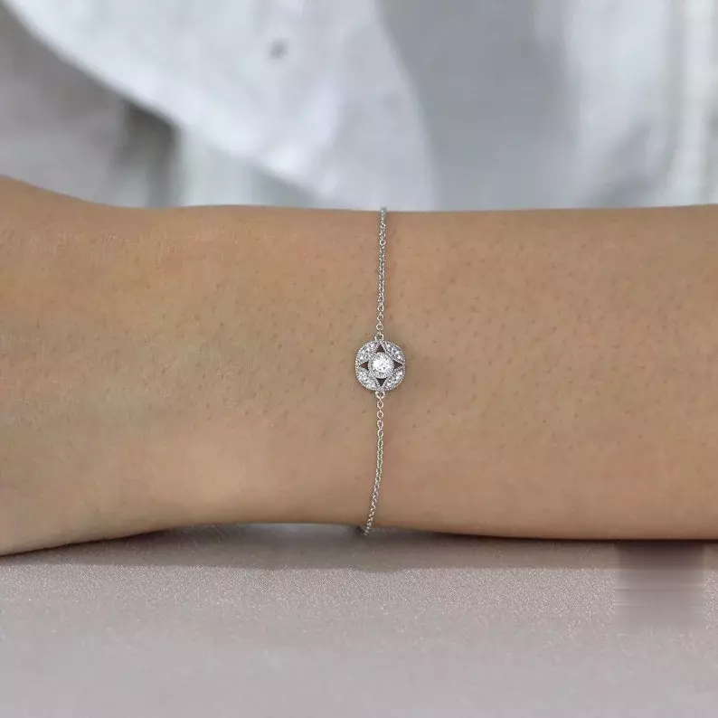 Milgrain Vintage Art Deco Chain Bracelet Brilliant Cut Diamond Silmulant Bridesmaid Gift Bracelet Dainty Chain Bracelet
